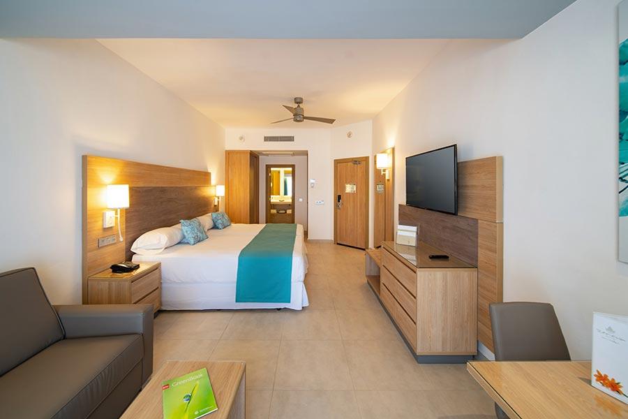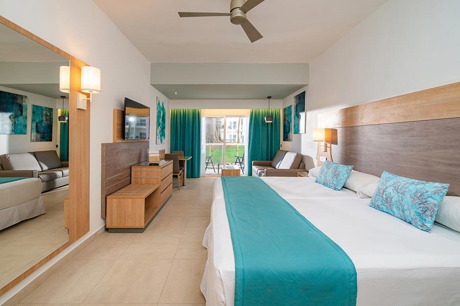 The Junior Suites at the Hotel Riu Palace Tropical Bay are the perfect accommodations for enjoying a holiday with incredible views of the Caribbean. In these 32-m2 rooms, you'll find two small double beds (125x200 cm), a sofa in the lounge area, free WiFi, satellite TV, a minibar and beverage dispenser, a coffee maker, and a balcony or terrace.