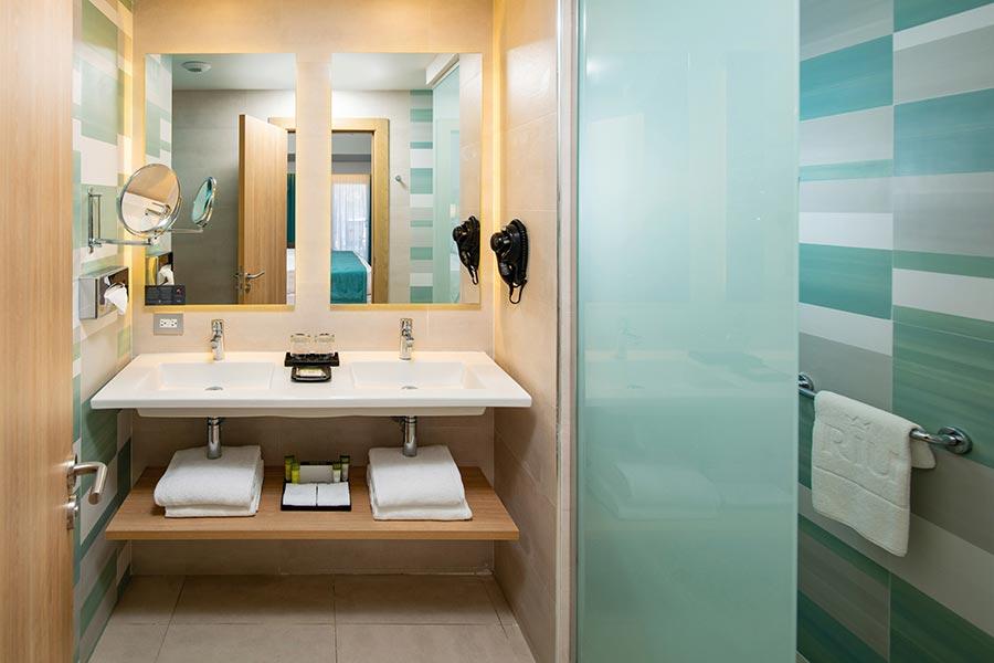 If you want to enjoy a holiday with the best amenities, the Suites at the Hotel Riu Palace Tropical Bay are the perfect place for you. These 47-m2 rooms have one king-size bed (180x200 cm), a sofa in the lounge area, free WiFi, satellite TV, a minibar and beverage dispenser, a coffee maker, and a balcony or terrace with views of the sea.